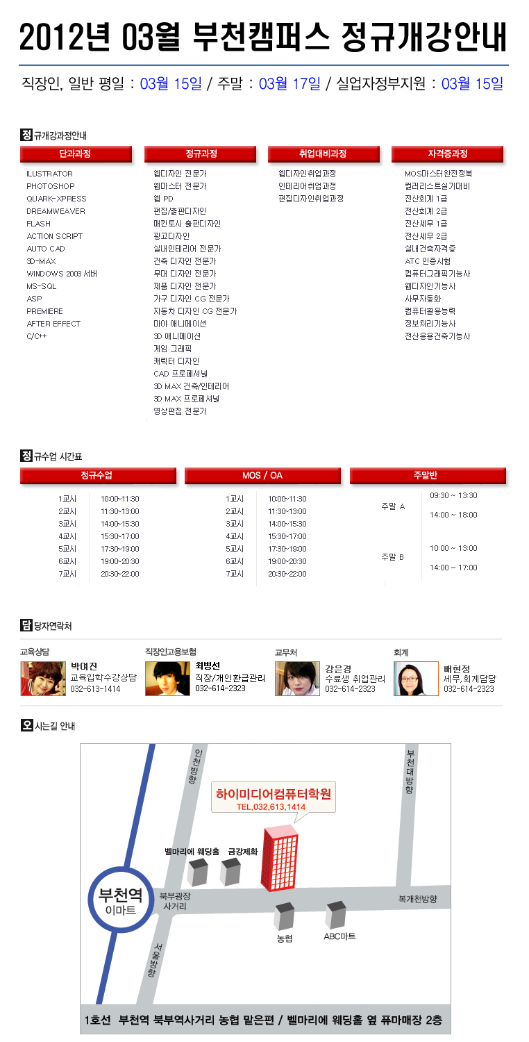 [정규개강] 2012년 03월 부천캠퍼스 개강안내